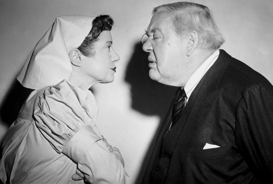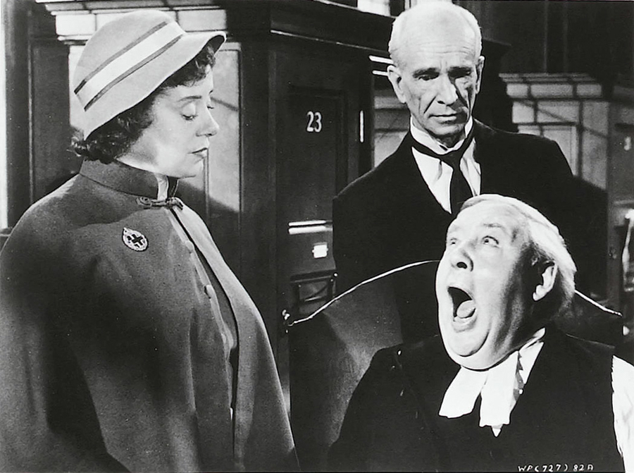 碎嘴老护士对韦尔爵士的形容是最贴切的:他是在医院里每时每刻欺骗医护的“狡猾的老狐狸”“淘气的老男孩”。把场合从“医院”换成“法院”同理。对《控方证人》电影外的八卦有所了解的观众更能体会护士老小姐和律师之间的对手戏有着非同寻常的幽默张力——扮演护士的兰彻斯特和扮演律师的劳顿在现实生活中是相伴多年的老夫老妻,老律师骂骂咧咧吐槽护士或护士无比凶悍地管束老人时,那些充满幽默机锋的时刻是现实和虚构相互渗透的“元表演”现场,一位天才的导演找到这样不可思议的组合,两位杰出演员在扮演角色的同时扮演生活,他们共同创造了这些超越了时代和时间的、生机勃勃的银幕时刻。