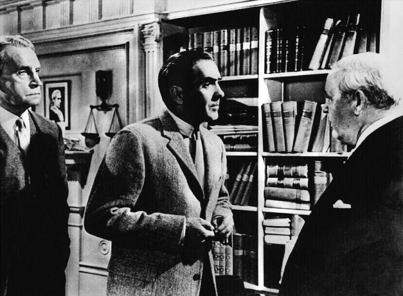换言之,烧脑和反转是这部电影众多优点里最不值一提的一面。要求剧组、演员和先睹的观众们“严禁剧透”,这是流淌着黑色幽默血液的怀尔德导演有意为之的一场“表演”。而“表演”正是《控方证人》的灵魂所在,不仅查尔斯·劳顿、玛琳·黛德丽和不幸早逝的泰隆·鲍华这群主演留下了被载入电影史的表演,并且,电影在室内剧的框架里创造“元表演”的现场,悬疑剧情的尽头是每个人如何利用各自的身份进行接二连三的“表演”。